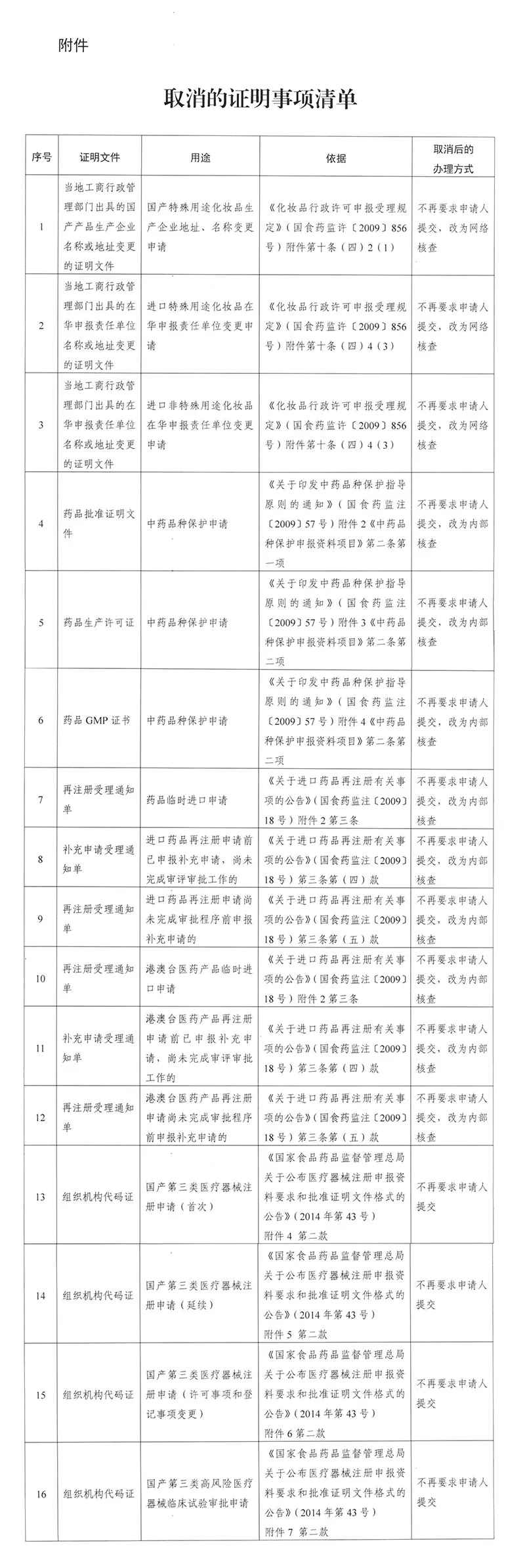 附件:取消的证明事项清单
